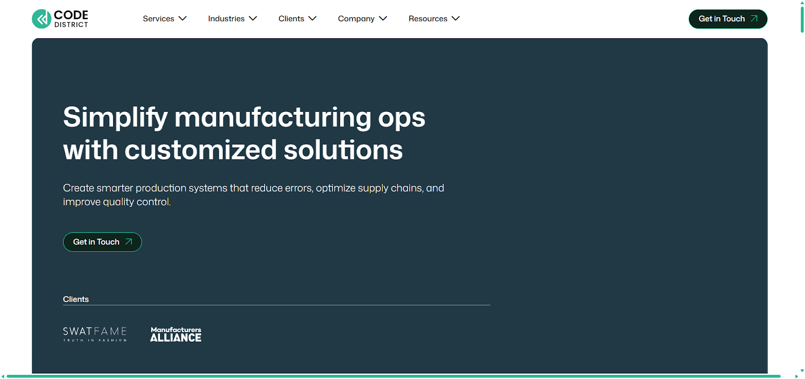 - Distrito de código: Desarrollo web y de software personalizado con sólidas capacidades en integraciones complejas de ingeniería, automatización e inteligencia artificial