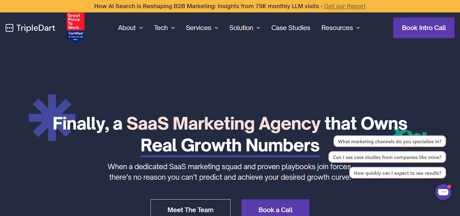 TripleDart surgió como una agencia enfocada en la industria del SaaS, y sus principales servicios son el SEO de SaaS, el contenido de SaaS y más.
