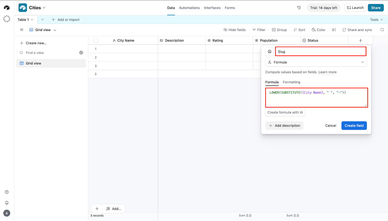 All Airtable data will be different. For instance, Austin has 6 letters, and New York City has 11 letters.
