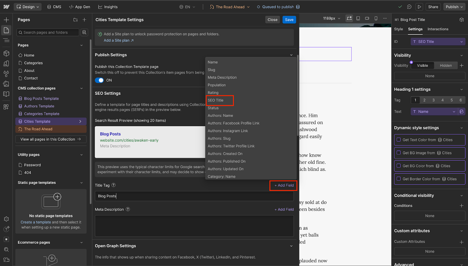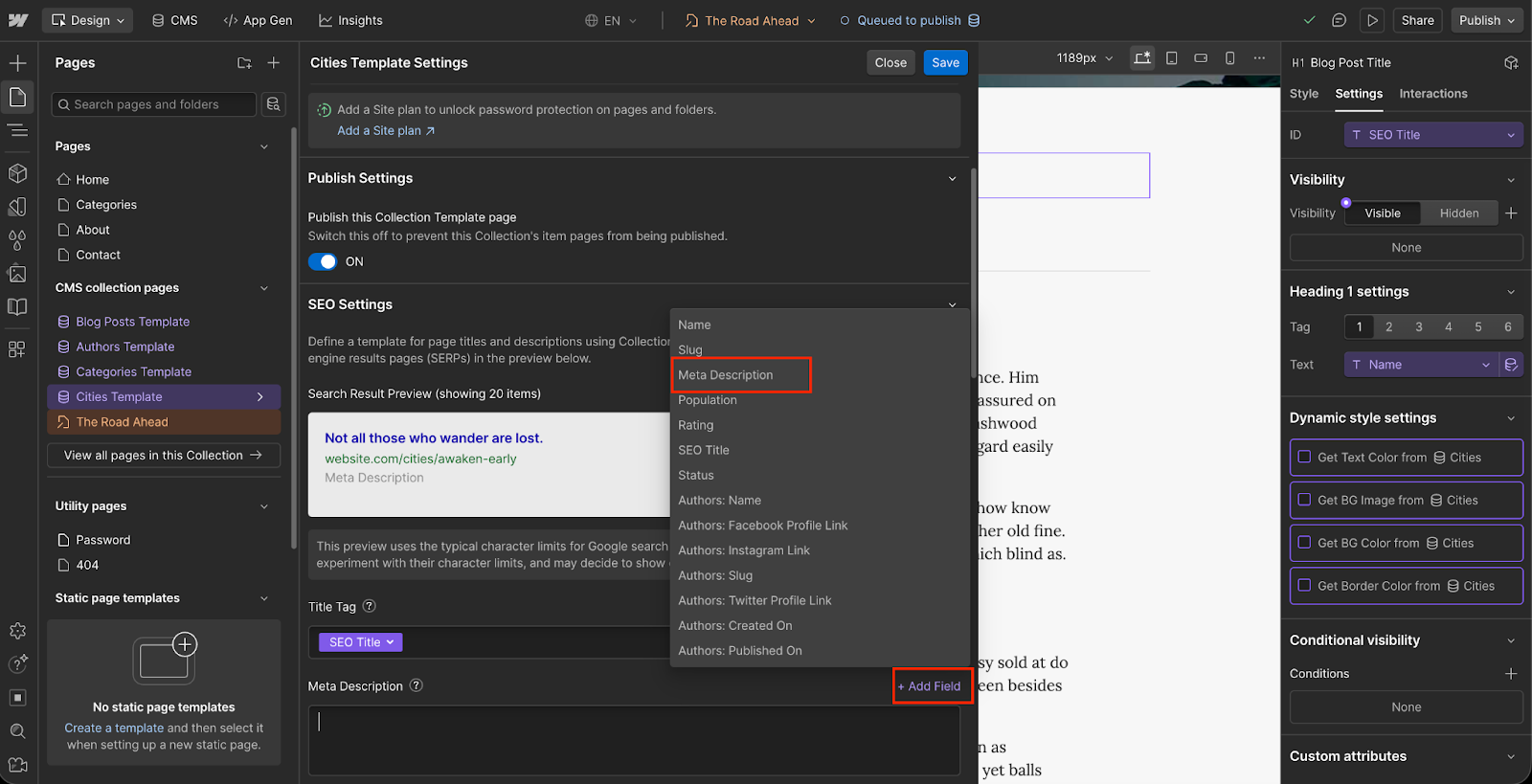 Then, in Webflow, at the bottom of the template, add something like People who looked at {City 1} also looked at {City 2}.