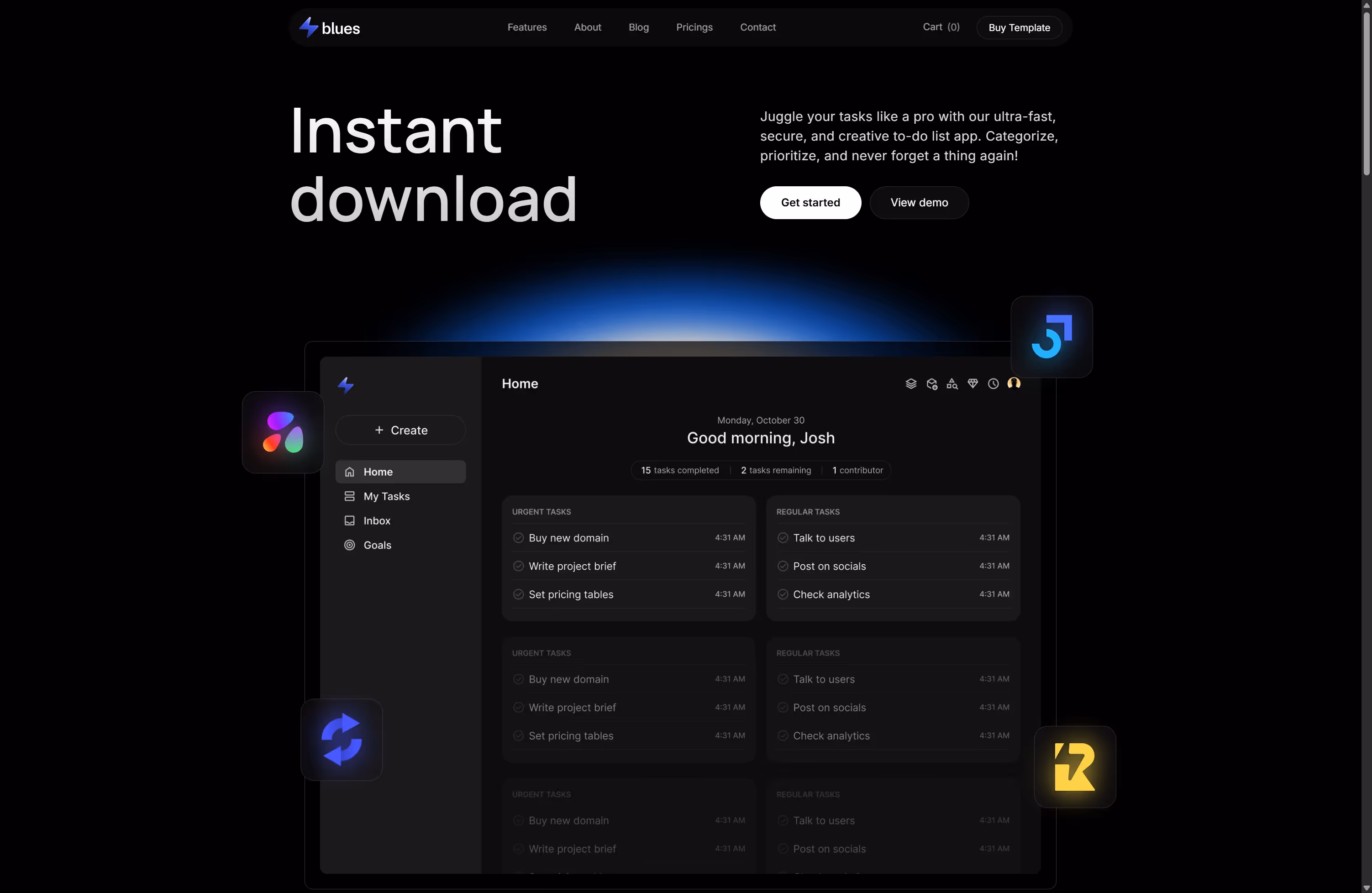 Blues is a sleek dark-themed SaaS template:
