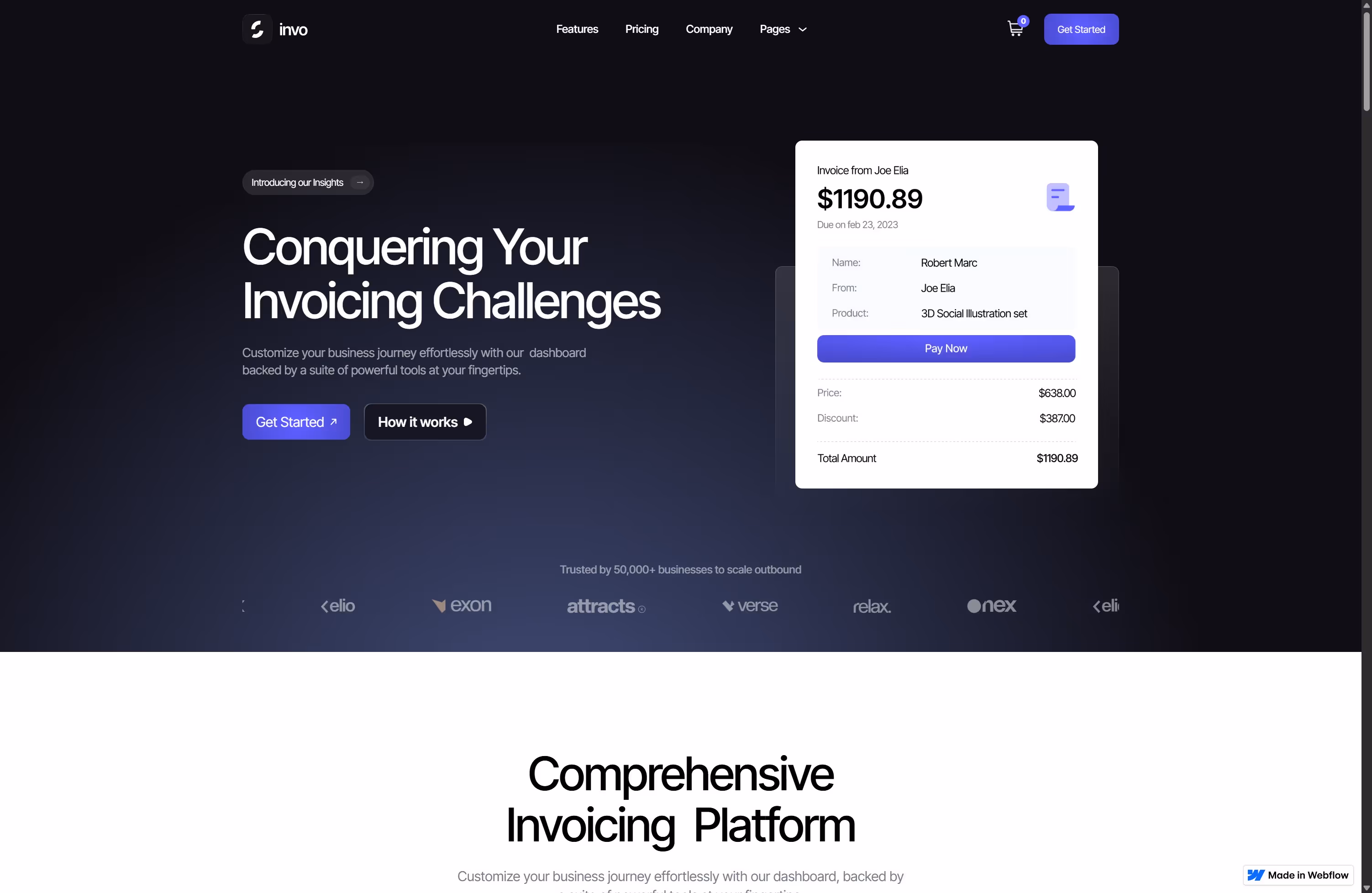 Live Preview: https://invo-template.webflow.io/